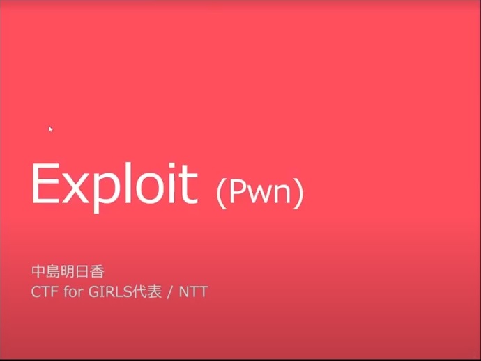そして挨拶の後は、さっそくCTF for GIRLS代表でNTTセキュアプラットフォーム研究所(執筆時点)の中島明日香さんによる55分間のExploit分野の講義が行われました。